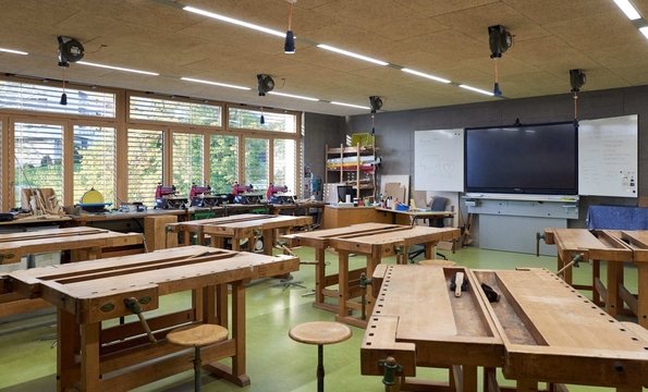 Tout un travail a été fait pour réduire encore plus l’impact carbone du futur bâtiment, notamment par le raccordement à un futur chauffage à distance au bois, la toiture des salles de gymnastique en structure bois plutôt que métallique et une démarche de ré-emploi/revalorisation des éléments des bâtiments existants.